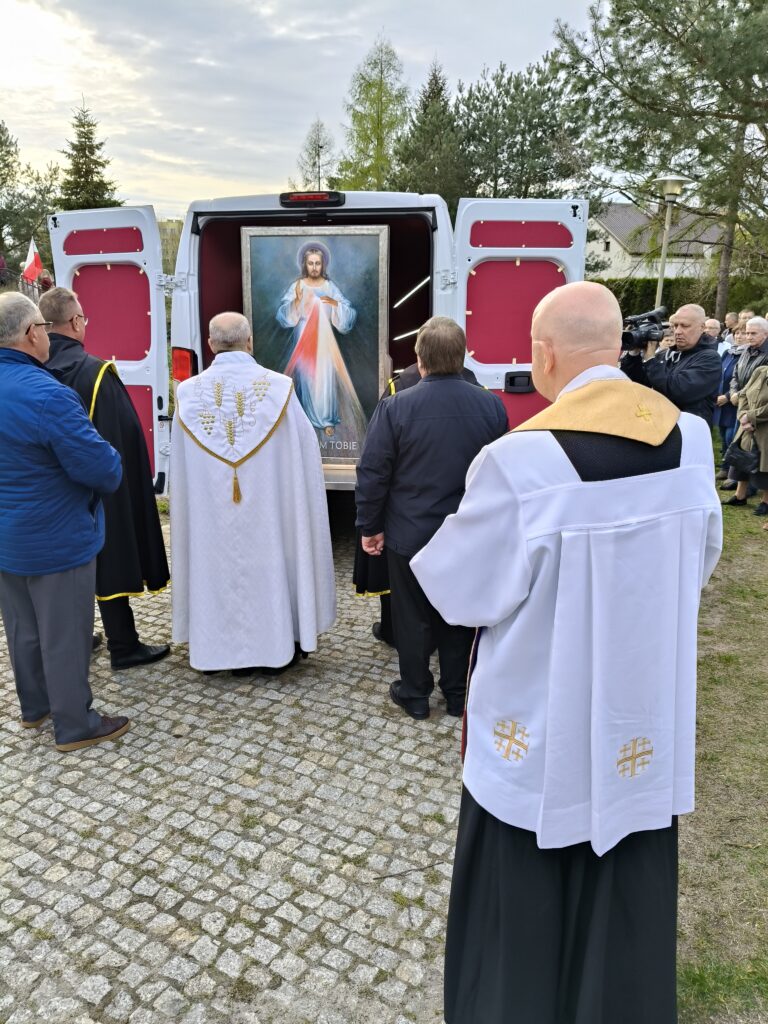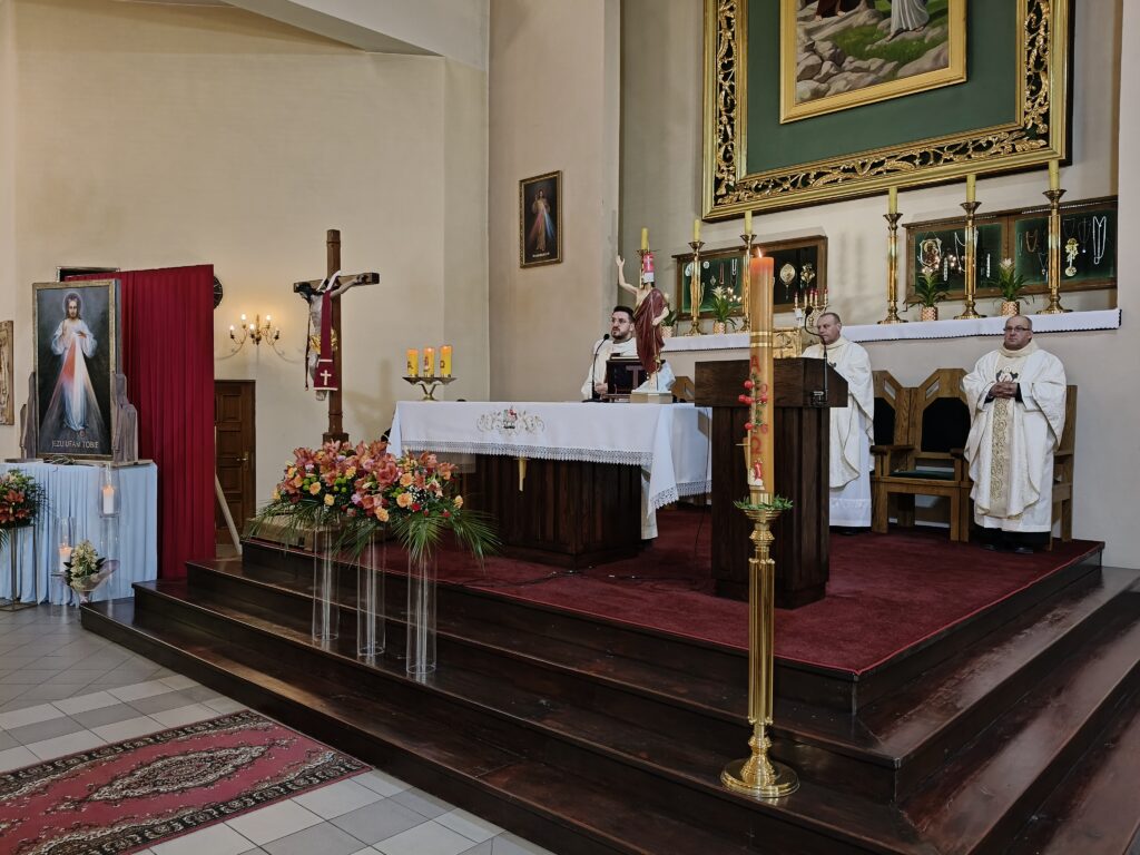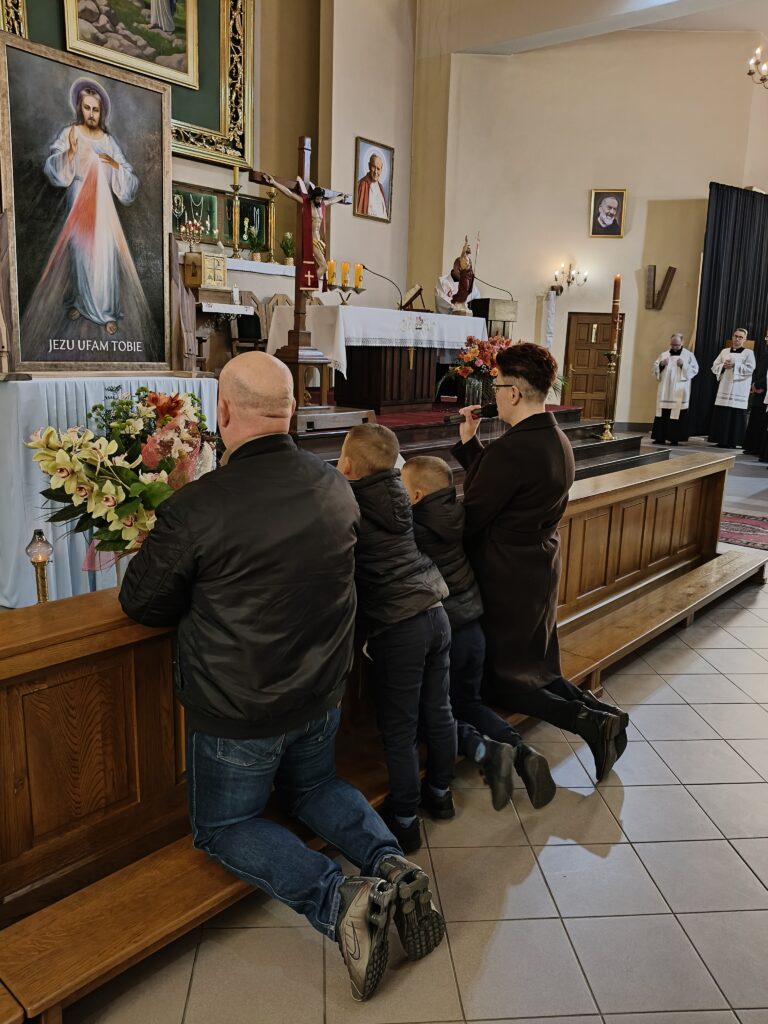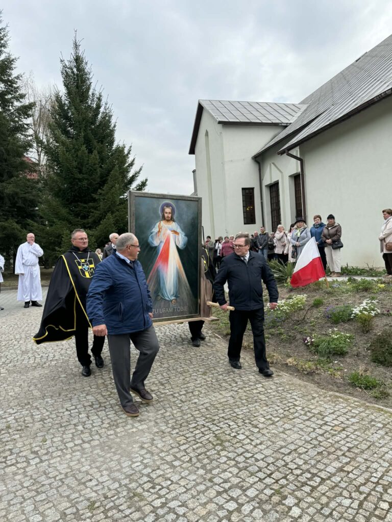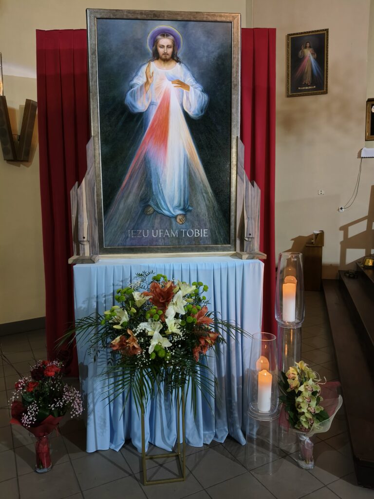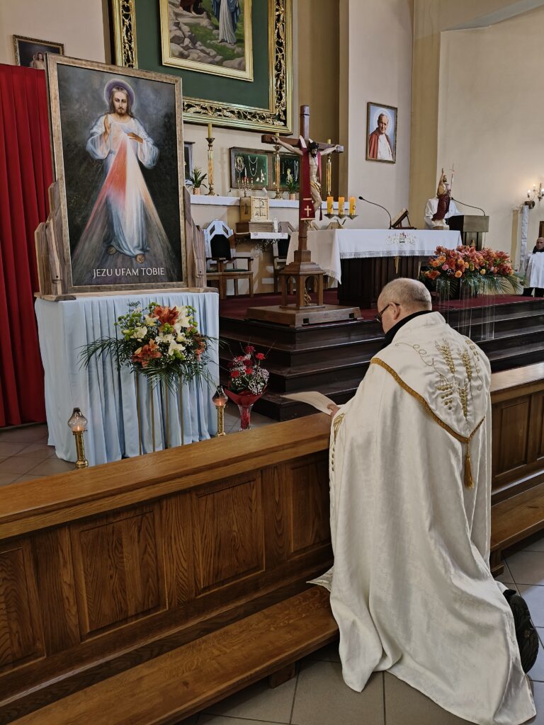W dniach 14-15 kwietnia 2026 roku przeżywaliśmy w naszej parafii czas peregrynacji obrazu Jezusa Miłosiernego. Obecność Chrystus w tym znaku Jego nawiedzenia była prawdziwym świętem dla całej naszej wspólnoty. Te godziny łaski, modlitw, poruszeń serca z pewnością na długo zapiszą się w naszej pamięci. Oby ten czas peregrynacji wydał trwały owoc w naszej codzienności, umocnił wiarę, ożywił nadzieję i otworzył nasze serca na bliźnich potrzebujących naszej pomocy i miłość. Niech Boże miłosierdzie, które mogliśmy uwielbić i przyjąć przemienia nas, abyśmy wszyscy stali się świadkami Miłosiernego Jezusa.