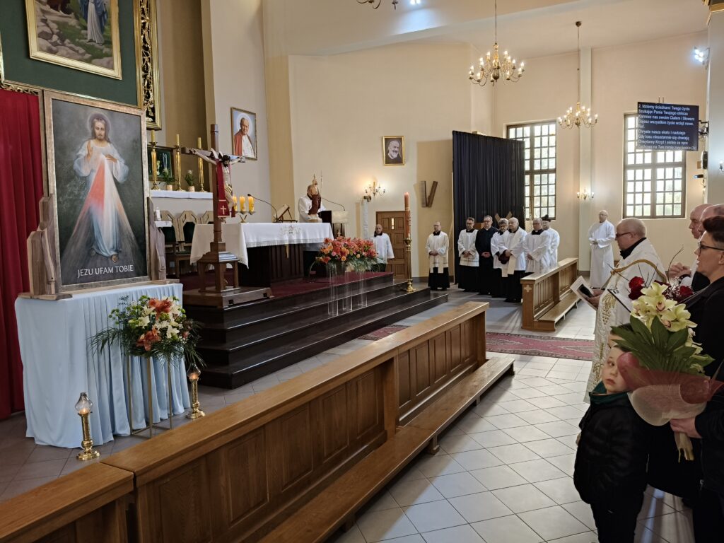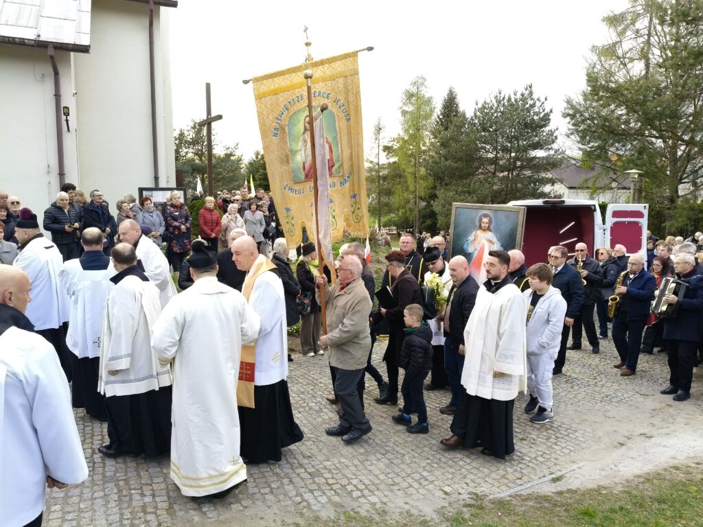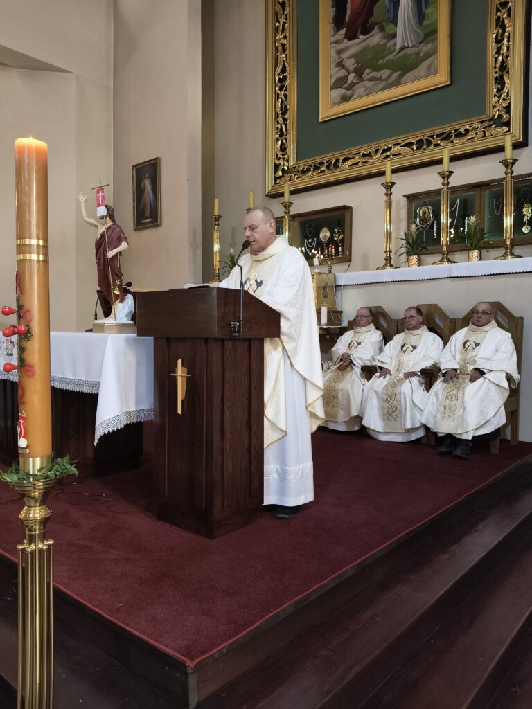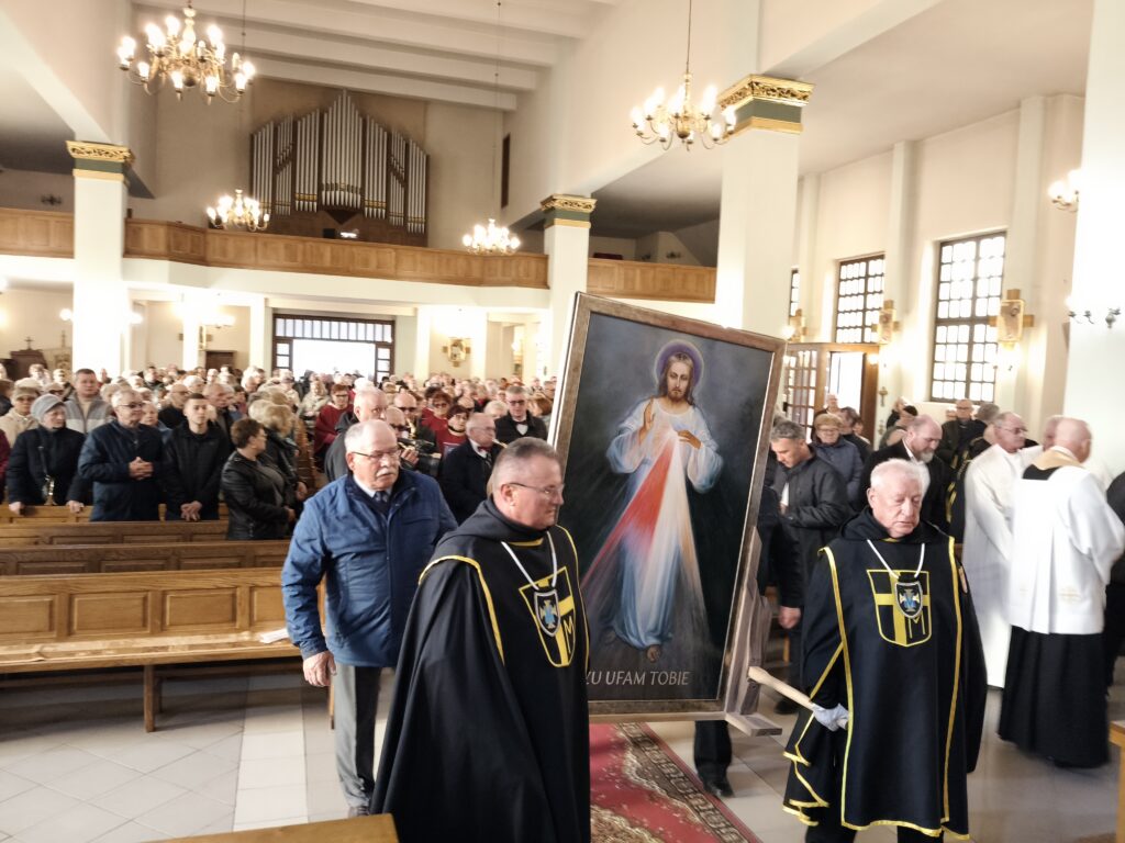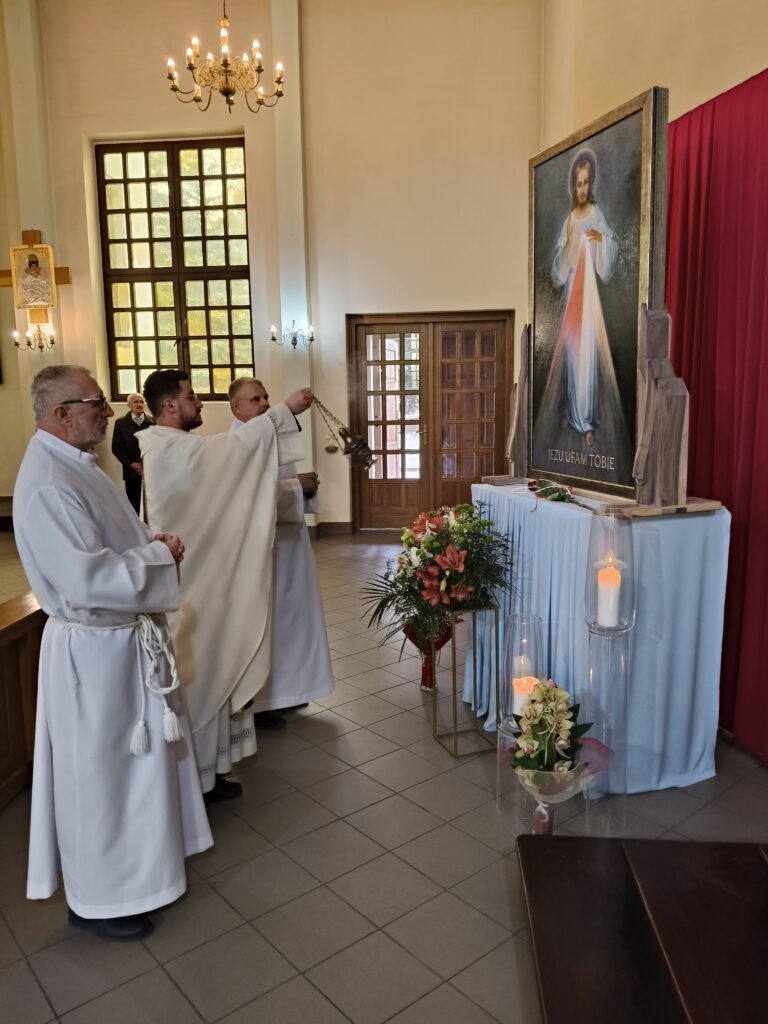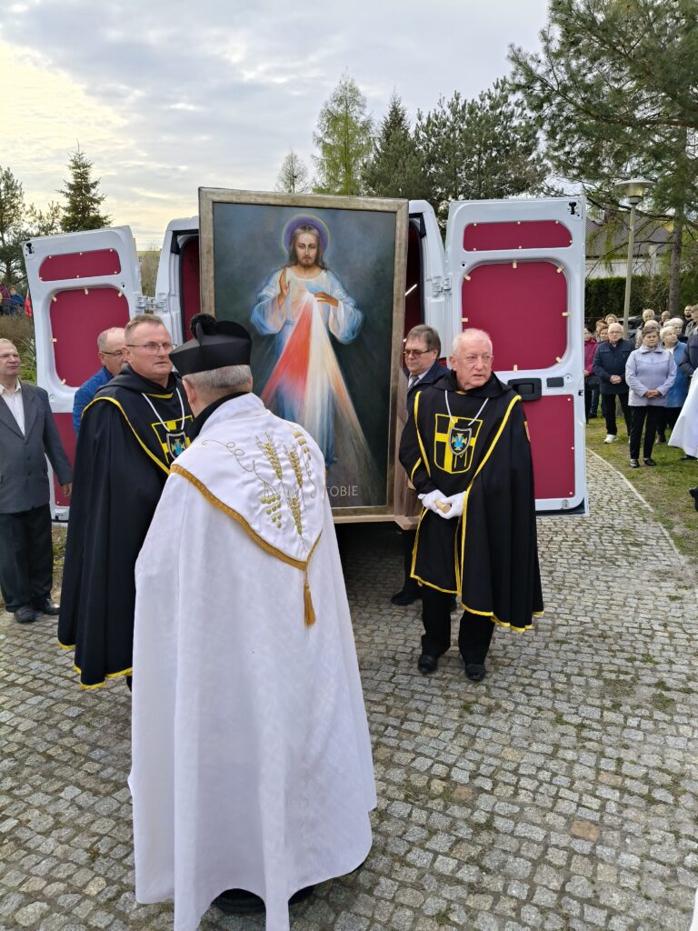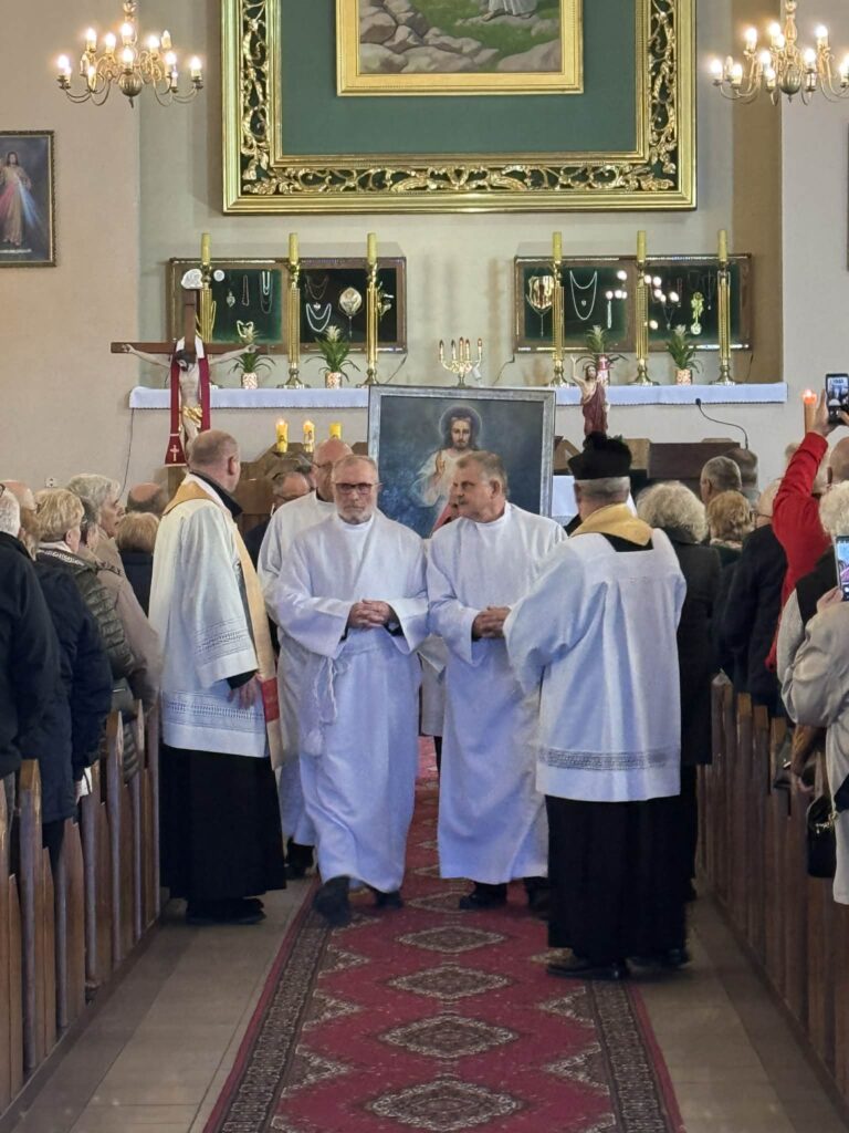 W dniach 14-15 kwietnia 2026 roku przeżywaliśmy w naszej parafii czas peregrynacji obrazu Jezusa Miłosiernego. Obecność Chrystus w tym znaku Jego nawiedzenia była prawdziwym świętem dla całej naszej wspólnoty. Te godziny łaski, modlitw, poruszeń serca z pewnością na długo zapiszą się w naszej pamięci. Oby ten czas peregrynacji wydał trwały owoc w naszej codzienności, umocnił wiarę, ożywił nadzieję i otworzył nasze serca na bliźnich potrzebujących naszej pomocy i miłość. Niech Boże miłosierdzie, które mogliśmy uwielbić i przyjąć przemienia nas, abyśmy wszyscy stali się świadkami Miłosiernego Jezusa.