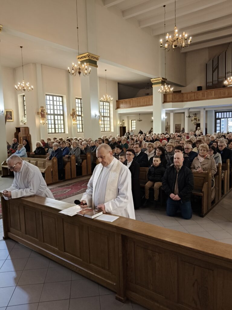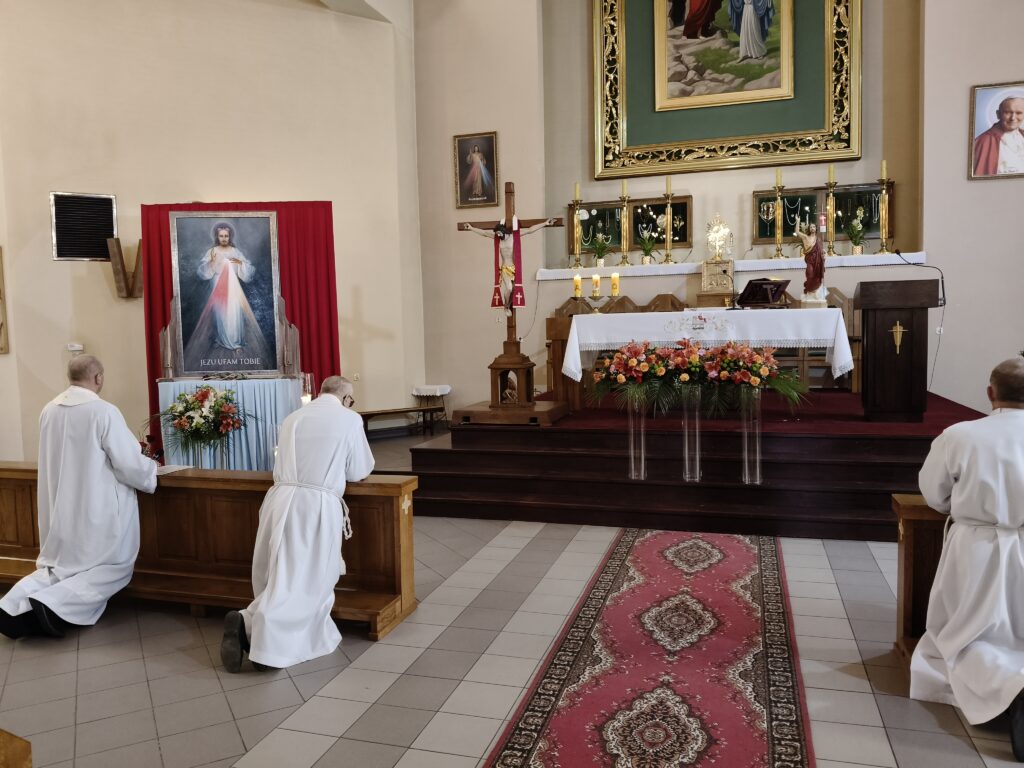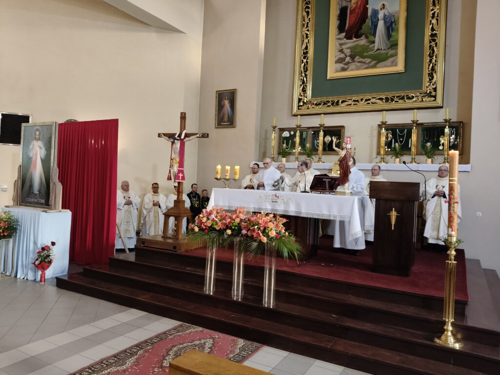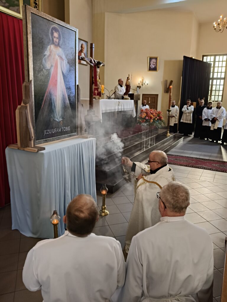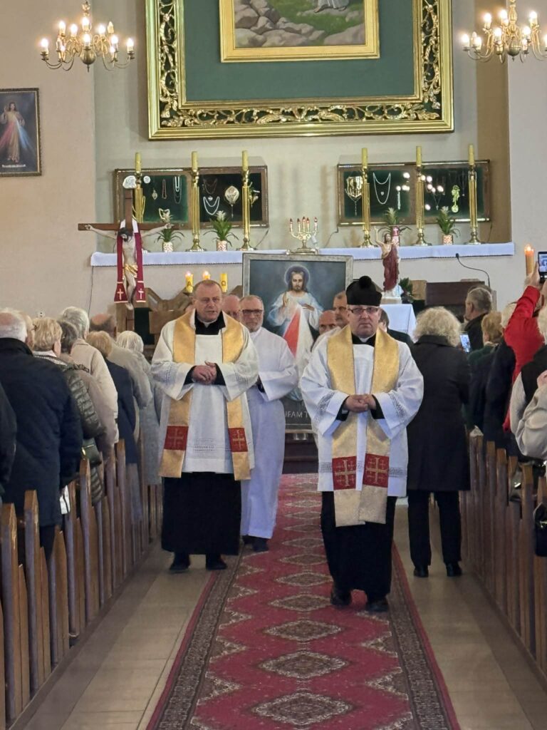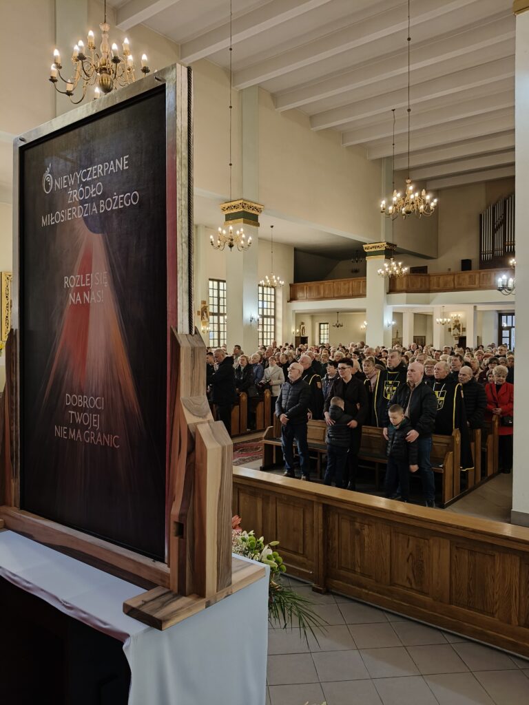 W dniach 14-15 kwietnia 2026 roku przeżywaliśmy w naszej parafii czas peregrynacji obrazu Jezusa Miłosiernego. Obecność Chrystus w tym znaku Jego nawiedzenia była prawdziwym świętem dla całej naszej wspólnoty. Te godziny łaski, modlitw, poruszeń serca z pewnością na długo zapiszą się w naszej pamięci. Oby ten czas peregrynacji wydał trwały owoc w naszej codzienności, umocnił wiarę, ożywił nadzieję i otworzył nasze serca na bliźnich potrzebujących naszej pomocy i miłość. Niech Boże miłosierdzie, które mogliśmy uwielbić i przyjąć przemienia nas, abyśmy wszyscy stali się świadkami Miłosiernego Jezusa.